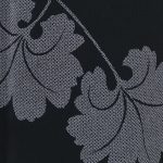 黒地に蕗の葉が大きく大胆に染疋田で描かれている。