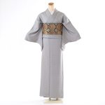 笹竜胆(ささりんどう)の地紋が入ったグレーの色無地。
