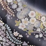 紺地のぼかしに辻が花風の花文様。