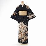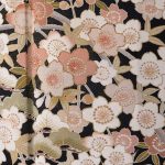 慶事に用いられる代表的な柄の松竹梅と桜が描かれている。