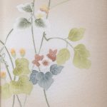 淡栗色のシックな地色に控えめな蔓花の柄。