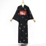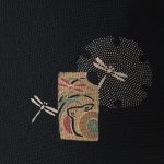 黒地に小さな雪輪、その中には小さな蝶やトンボが描かれている。