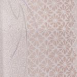 やさしいピンク地に菊の花が菱形状に図案化されている。