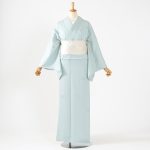 綺麗な水色に図案化された唐花の刺繡。
