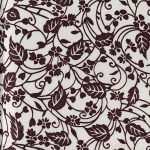 白地に茶の総柄で草の葉が描かれている。